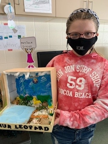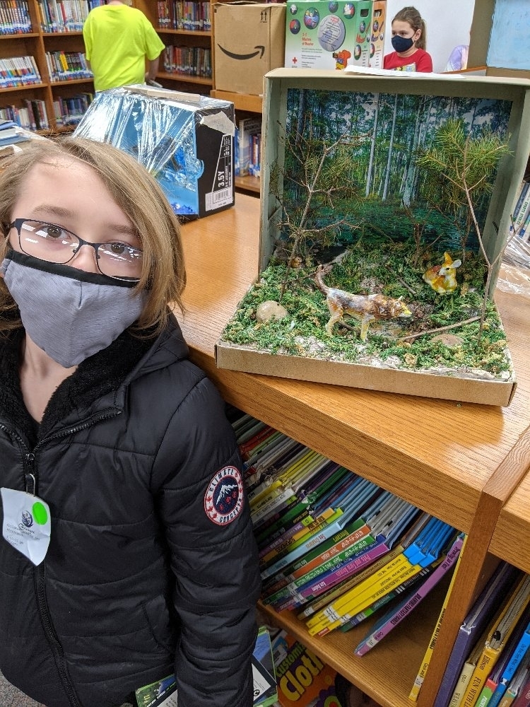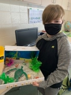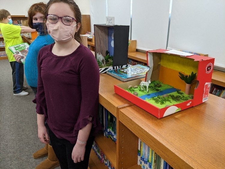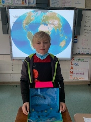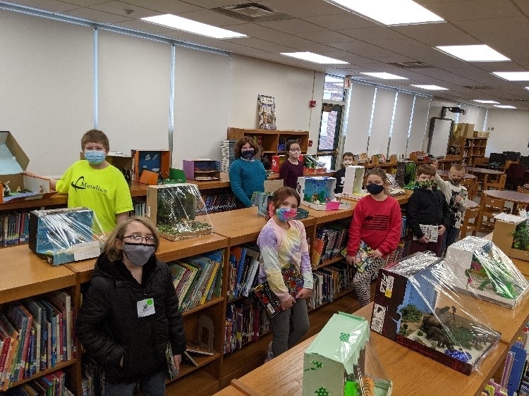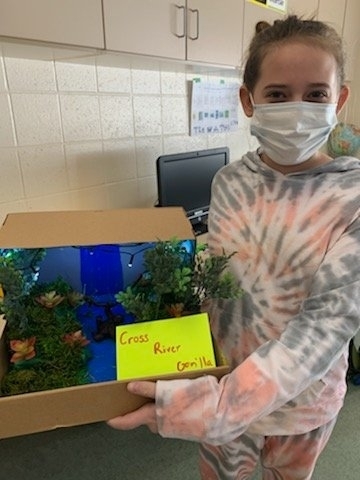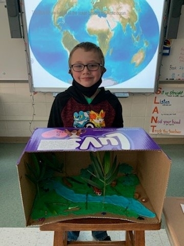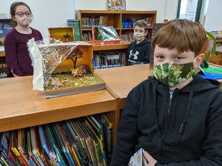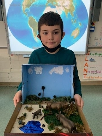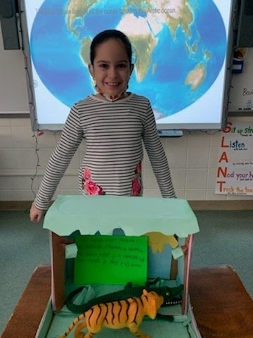 The fourth-grade students proudly displayed their Endangered Animal habitat diorama projects after a research unit on Endangered Species where they had to conduct research in order to write a report and create a Google slideshow.